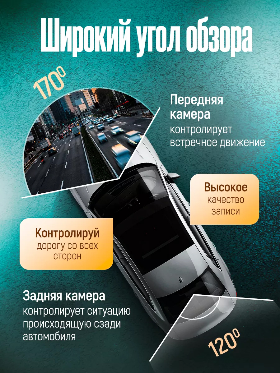 Видеорегистратор позволяет записывать видео с фронтальной и задней камеры автомобиля, сохраняя доказательства в случае ДТП или конфликтных ситуаций. Благодаря высокому разрешению и широкому углу обзора передней камеры в 170 градусов и задней в 120 градусов, устройство обеспечивает качественную и детализированную запись Full HD 1080, а также оснащено ночным видением и датчиком движения и удара G-sensor.