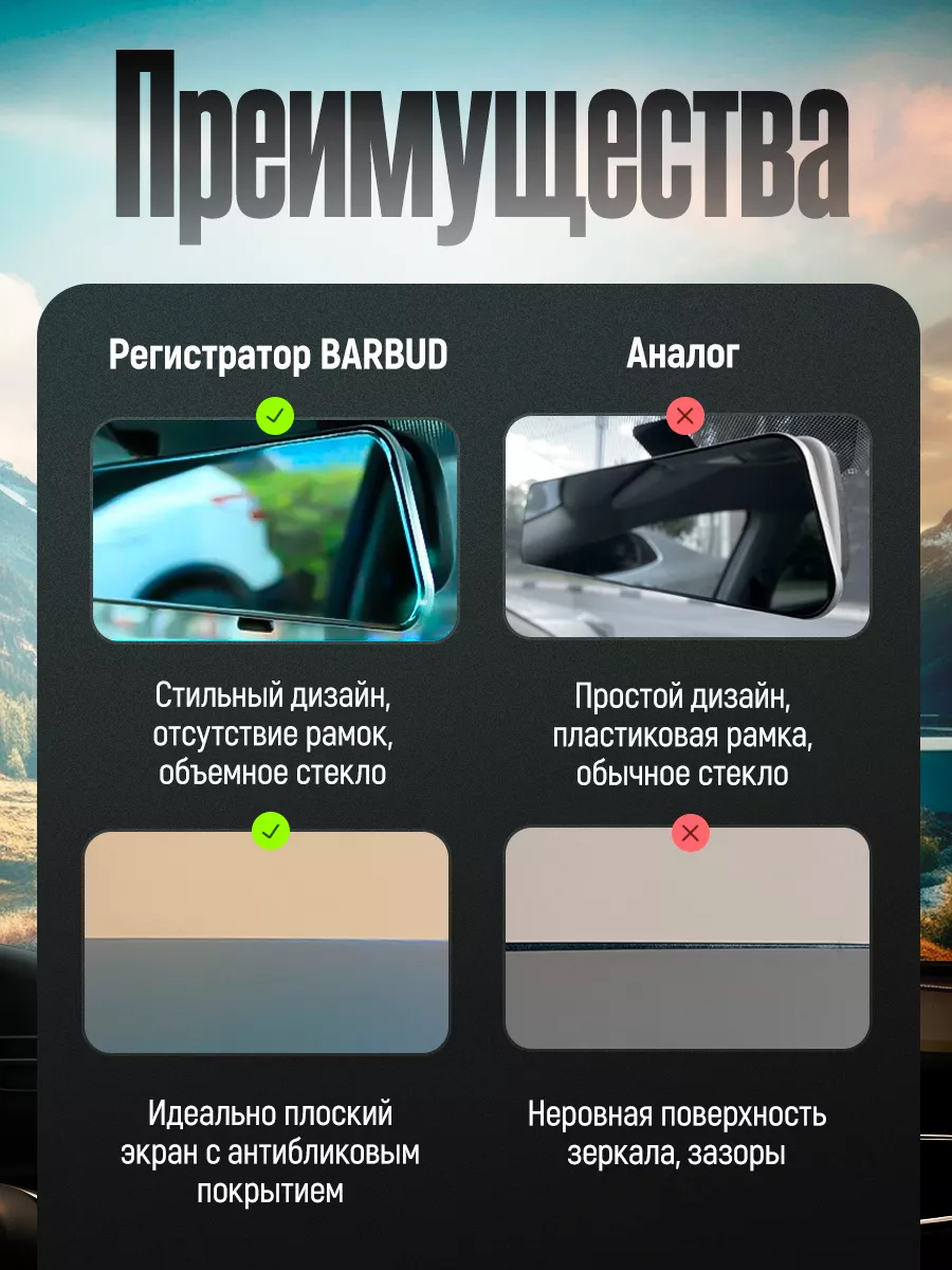 Компактный размер и простая установка делают регистратор очень удобным и практичным. Автозеркало можно закрепить на лобовом стекле с помощью специального крепления — держателя присоски. Это не просто девайс, а гарант спокойствия для водителя.